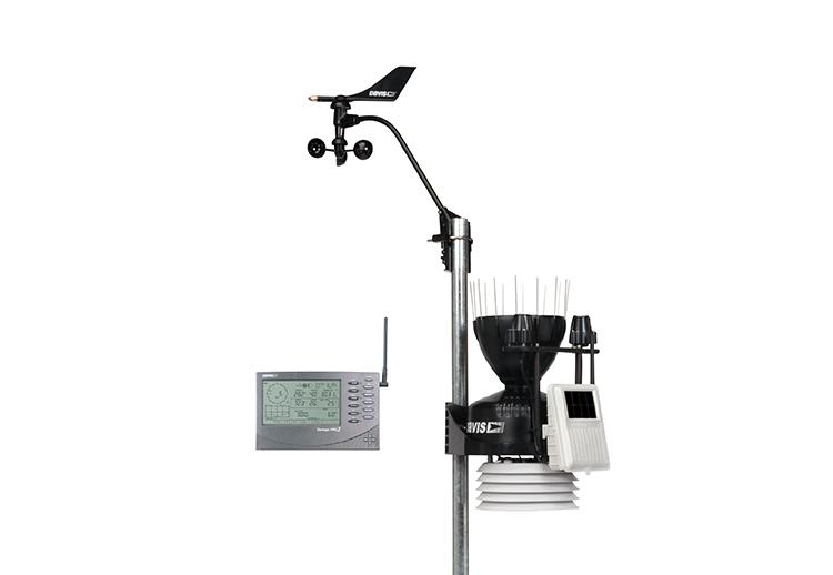 De thermometer en luchtvochtigheidssensor hangen 1,5m boven de grond, de windsensor is draadloos verbonden met de console en hangt 2m boven de grond maar wordt later dit jaar verplaats naar het dak op 8m boven de grond.